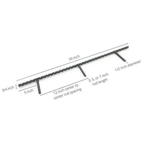 Brackets will typically come with rods in depths of 4”, 6” and 9” and with overall bracket widths in variations of 10”, 16”, 22”, 28”, 34”, 40”, 46”, 58” and 70”.